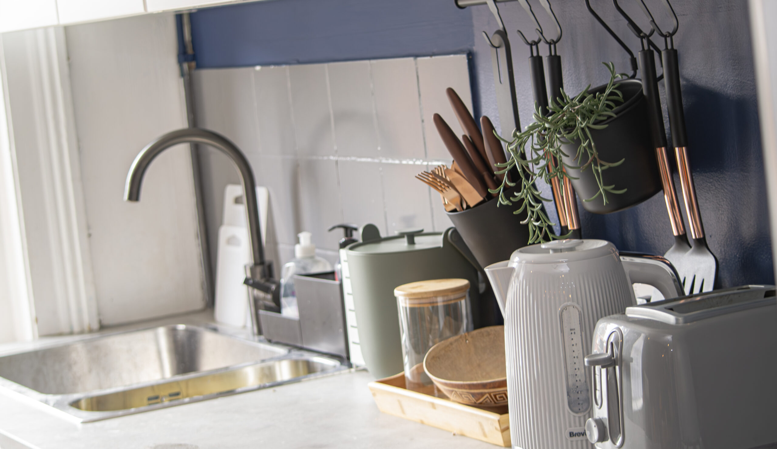 Kitchen (cooker, oven, microwave, fridge, toaster, kettle, pots, pans, dishes & silverware)